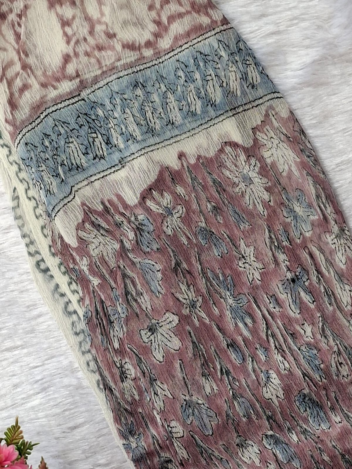 • Handblock prints and traditional techniques may have minor irregularities — these are natural characteristics and enhance the uniqueness of the fabric.