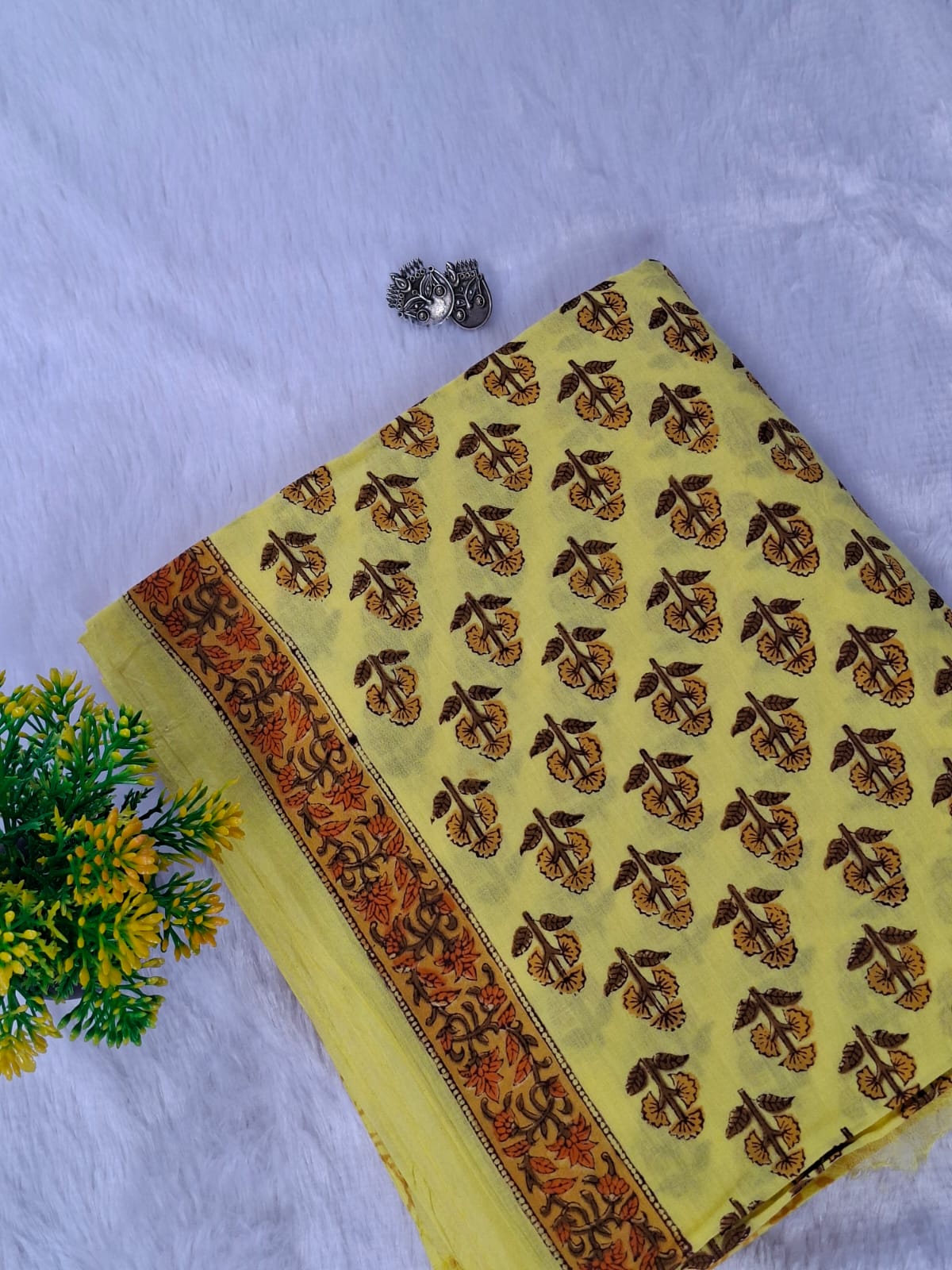 • Handblock prints and traditional techniques may have minor irregularities — these are natural characteristics and enhance the uniqueness of the fabric.