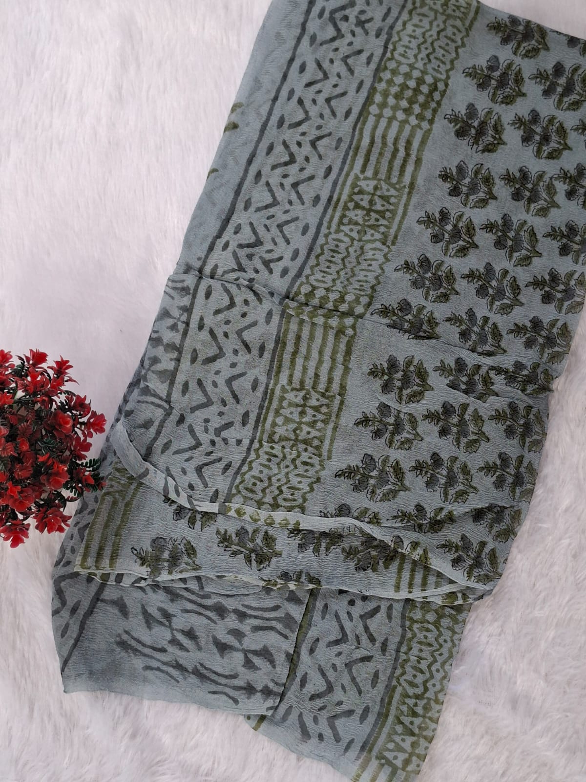 Elevate your wardrobe with this pure cotton unstitched suit, perfect for creating custom designs tailored to your style. Crafted from breathable, high-quality cotton fabric, this versatile grey ensemble offers comfort and elegance for everyday wear or special occasions. The included chiffon dupatta adds a graceful finishing touch.