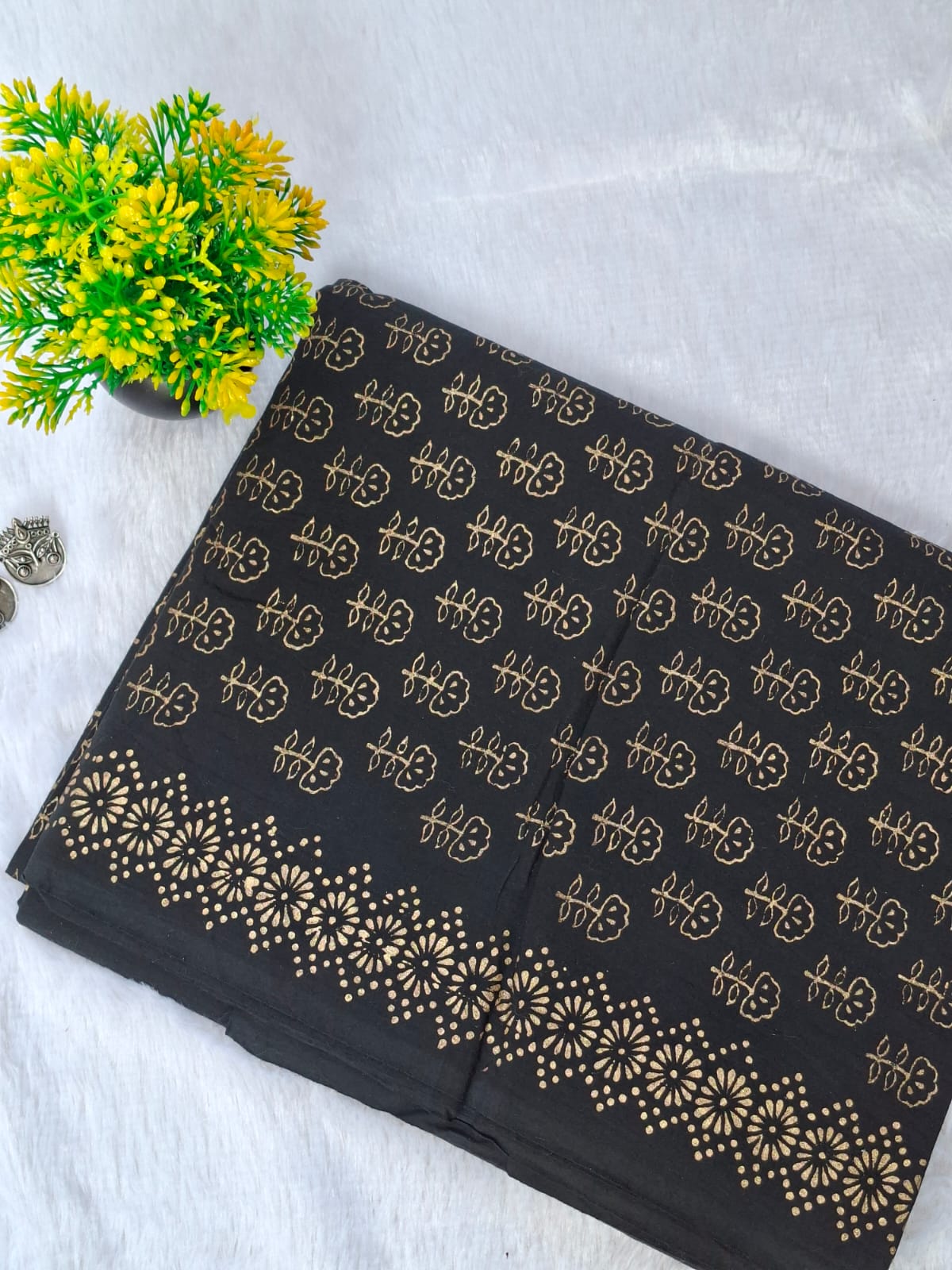 • Handblock prints and traditional techniques may have minor irregularities — these are natural characteristics and enhance the uniqueness of the fabric.