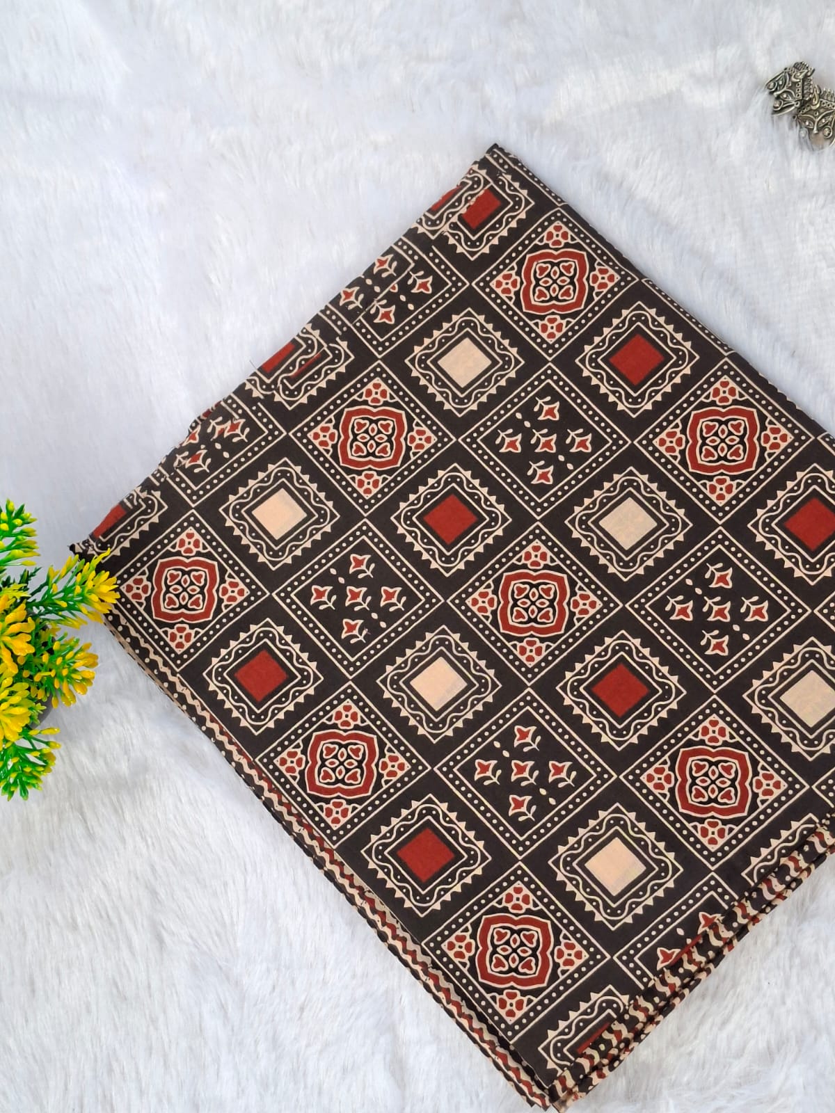 • Handblock prints and traditional techniques may have minor irregularities — these are natural characteristics and enhance the uniqueness of the fabric.